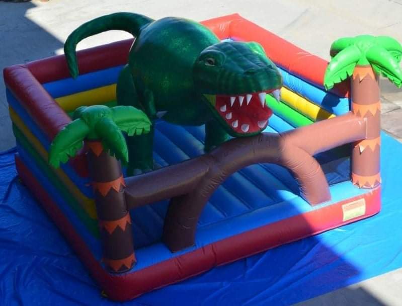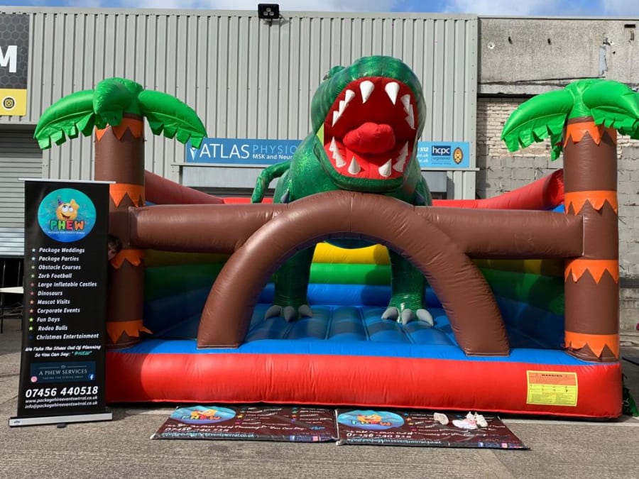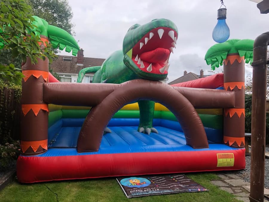 The castle has reinforced seams and a larger bouncing area than most (many bouncy castles are just 12ftx12ft rather than our 15ftx 15ft) and is suitable for up to 8 children at a time. We have a giant inflatable dinosaur in the middle giving it that roar-some look.