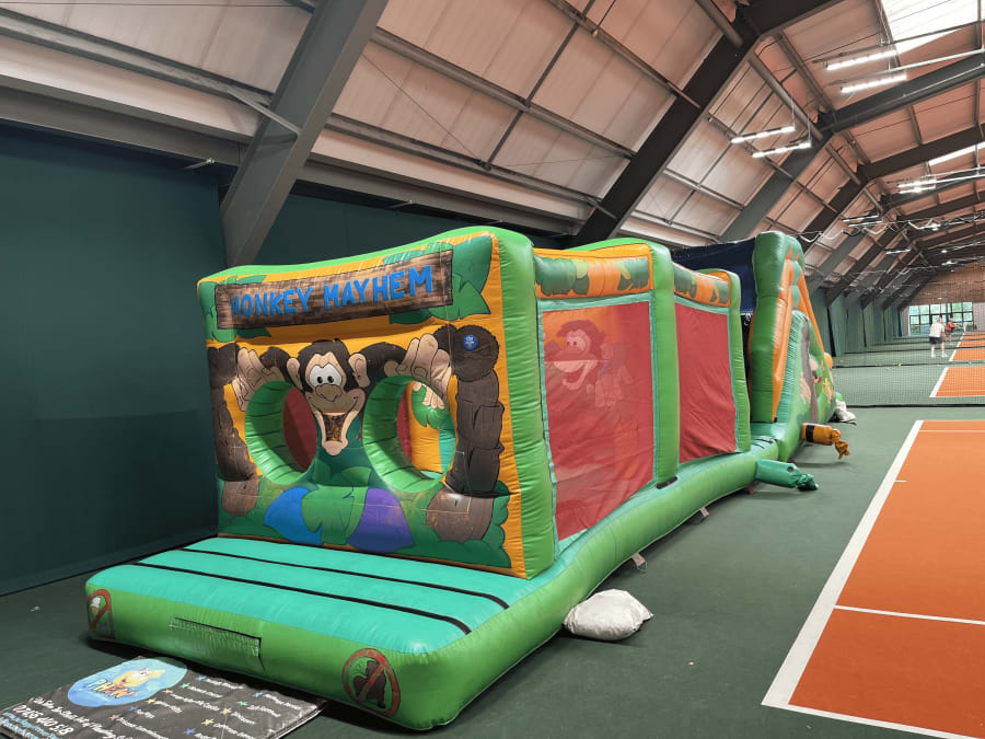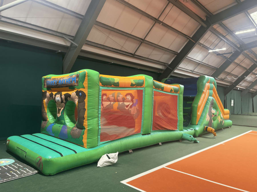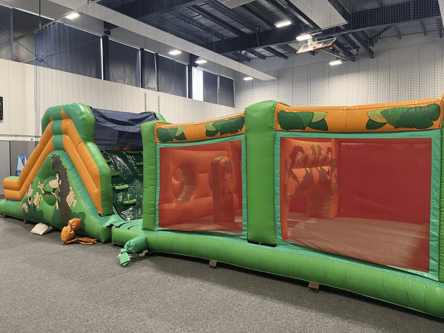 This Obstacle Course is very popular for birthdays and many other occasions. With reinforced seems and a larger bouncing area its suitable for up to 10 children at a time. With lots of jungle animals all over this obstacle course and with its bright colours this really is a wow feature for any event! With Jump through holes, bish, and bash, squeeze through rollers, climbing wall and a slide there is so much to do the kids will most definitely not get bored, this will keep them going all day long!