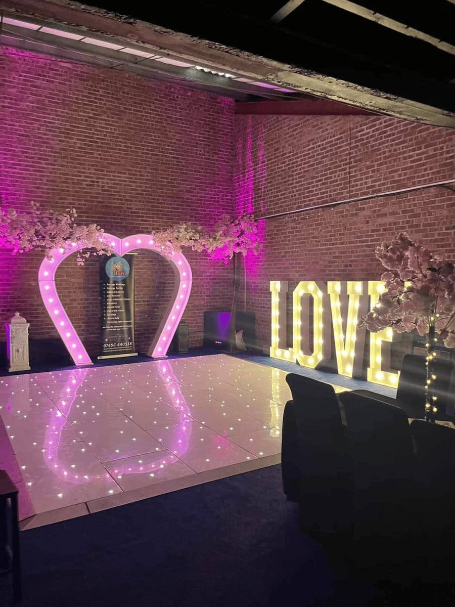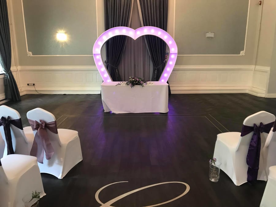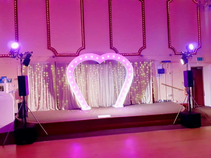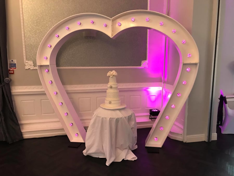 This LED heart arch has added that elegance to many parties around North West, Merseyside and Cheshire. Availability is limited as bookings are often taken weeks in advance, so we advise you call early.