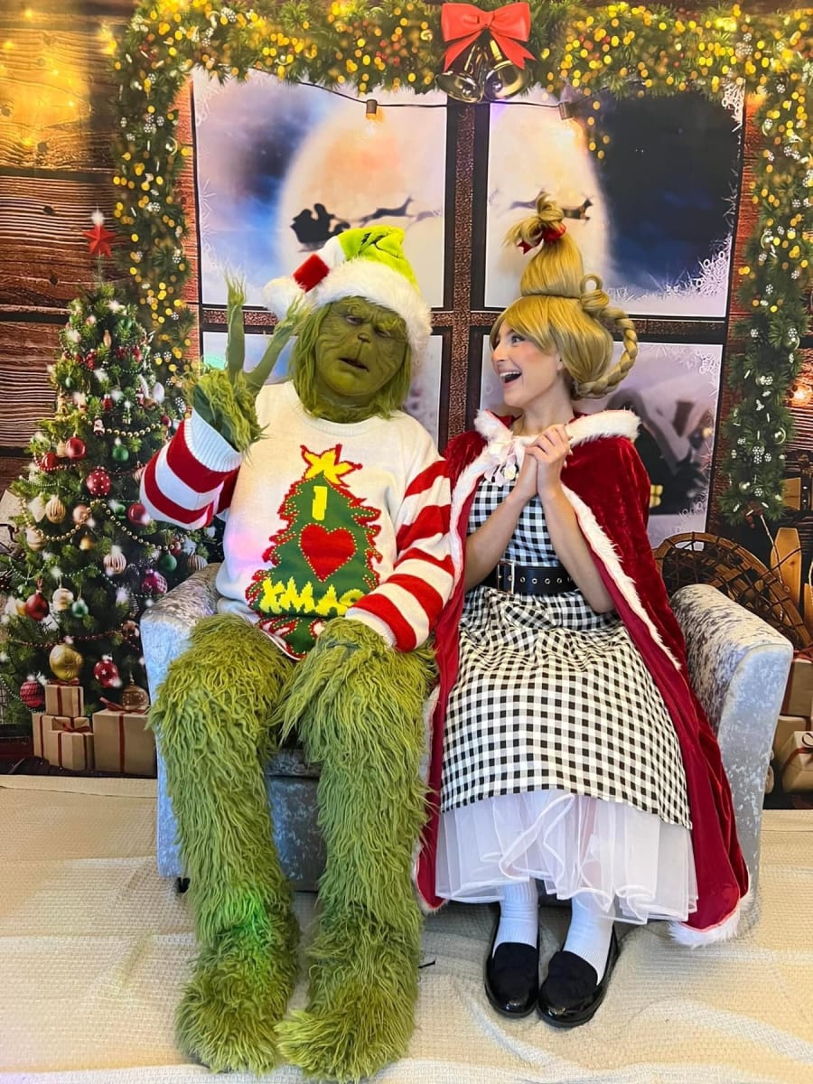 Our Grinch is very popular at Christmas events. For All of you Grinch lovers, have you ever met the Grinch? Well now is your chance! This is the most dedicated role in our mascot selection, priding ourselves in being the best! We have spent a ridiculous amount of money perfecting this mascot and the results are amazing quality. We use the same company that made the Jim Carrey Grinch movie, using the same hair and paint job on the silicone mask, which moves with the actor's facial features! This is a new service for 2021 and we are looking to improve the experience even more with props and also using our very own Max and Cindy Lou. Our actor for this role has been watching the film every night and preparing for the role when visits take place near Christmas!