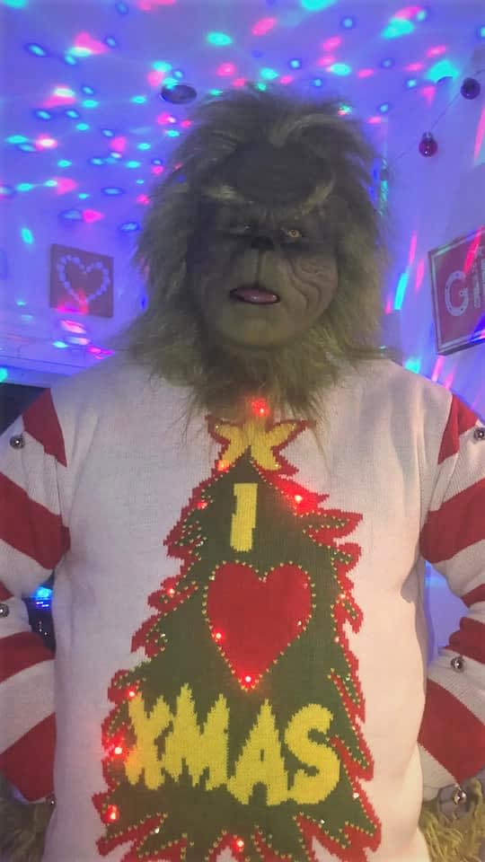 Our Grinch will have you laughing with his witty and humorous comments while visiting you at home. He will interact with the kids and pose for photos and he will even play tricks and games while leaving you with a naughty presents and he will even read you a story!