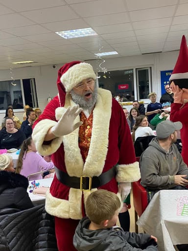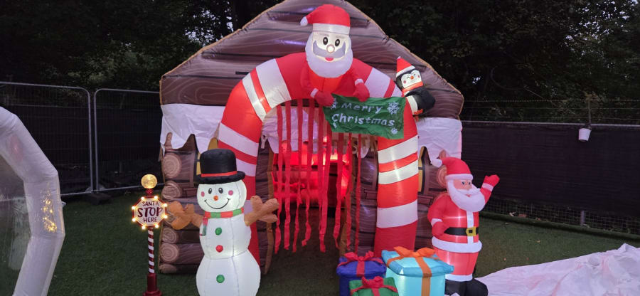 🎅 Meet Santa – inside his Inflatable Grotto, complete with his Christmas chair, ready to greet children with gifts.