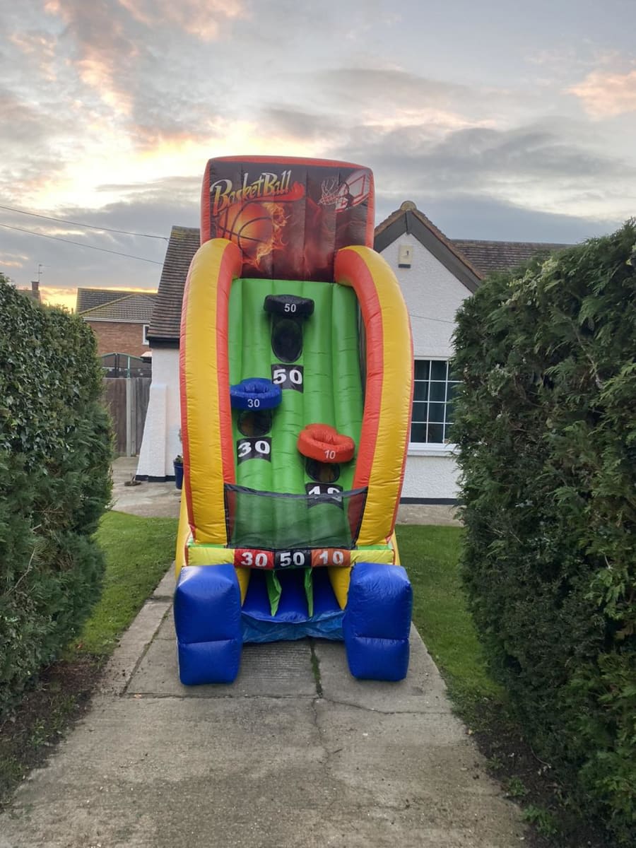 This is a fantastic inflatable game that stands out all by itself at 14 foot tall! It's great fun and being an inflatable somehow makes it more incredible than a regular basketball stand.Three hoops that increase in difficulty for players. You can go for the hardest shot for 50 points, take a step down for 30 points or go for the easy win at ten points.