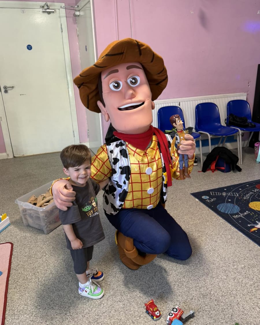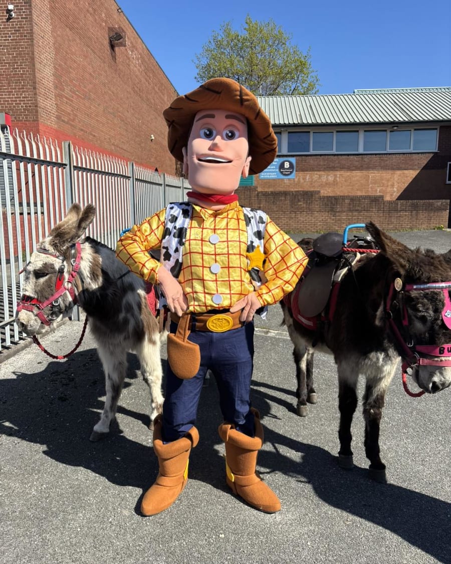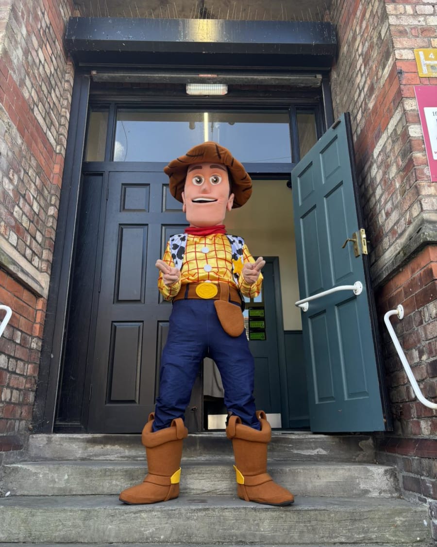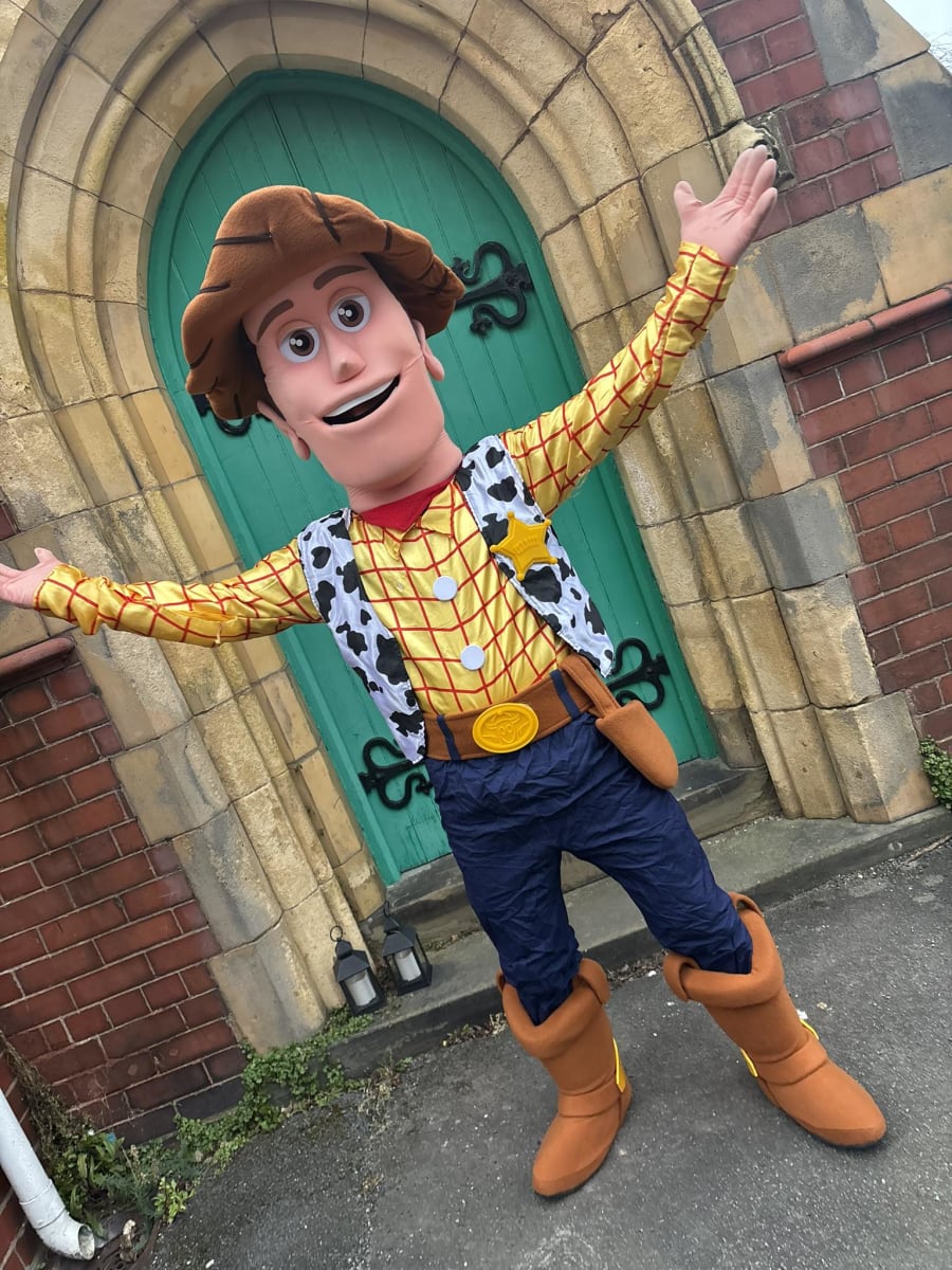 To book Woody, just use the big buttons below - you can even check his availability against our live diary. Our innovative online booking system collects all the information we require, and we will confirm your details with a phone call. Or if you have any questions about this or to get the best value for your money, check out our packages which completes your party! You can get a 35ft inflatable Obstacle course with one of our mascots or an inflatable castle plus LED numbers, games, music, photography, to make your party the best around, call us now on 01512 034455!