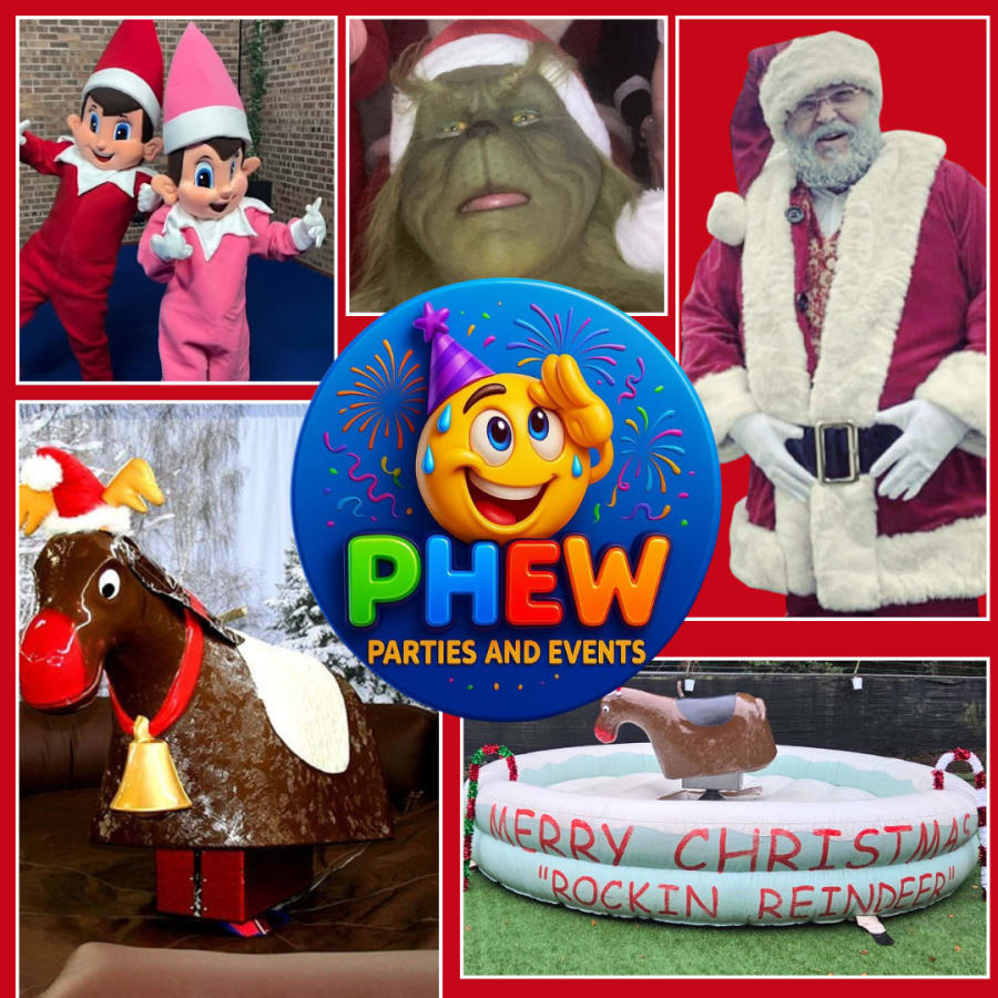 We bring the Grinch, Santa clause and our naughty elf to control our Rodeo reindeer, play Christmas music with lights, games and a whole lot of fun... not to mention our snow machine to add to the Christmas magic! This is a must for any Christmas party and amazing value for money!